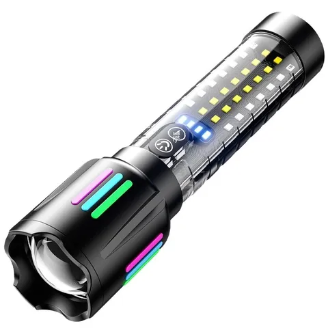 Lampe de poche LED tactique zoomable en plein air forte laser blanc brillant aventure d'urgence à longue portée rouge bleu avertissement pour le camping