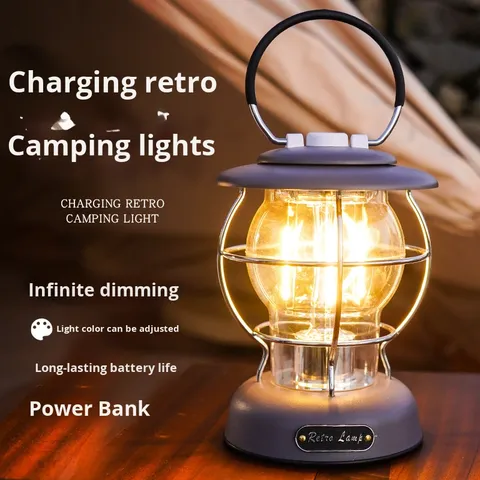 Nuovo tipo transfrontaliero-C ricaricabile Retro lanterna portatile LED sorgente luminosa all'aperto campeggio atmosfera lampada da tenda da campeggio